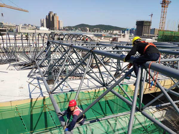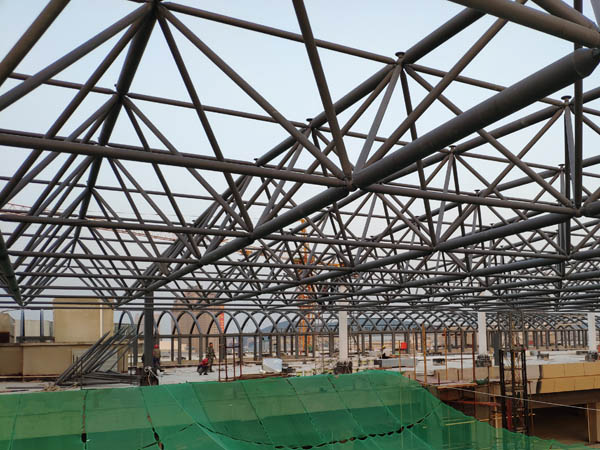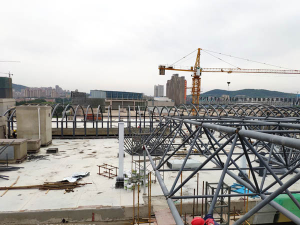 煙臺(tái)紅星美凱龍網(wǎng)架項(xiàng)目,跨度32米長(zhǎng)170米,為煙臺(tái)商場(chǎng)內(nèi)采光天窗項(xiàng)目,藍(lán)海公司采用高空散狀方式30天完成網(wǎng)架主體,得到甲方高度好評(píng)。